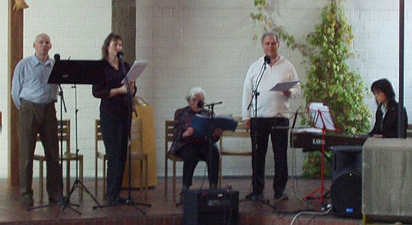 ![]() ![]() Wir gestalteten diesen lateinischen Abendmahlsgottesdienst zusammen mit der Gruppe „Neuma“. Die Gruppe „Neuma“, unter der Leitung von Peter Gutzeit, ist ein Ensemble für Musik des Mittelalters. Wir erlebten die Gruppe „Neuma“ mit dem gesanglichen Vortrag der „Missa in die Paschae“, der Ostermesse des Mittelalters bereits in den vergangenen Jahren. (siehe Nachrichten) Zum Brot brechen (Fractio) hatten wir diesmal ein Brot mit Kreuz backen lassen. Pfarrer Zillmann und Pastorin Orland teilten das Abendmahl aus. Anschließend